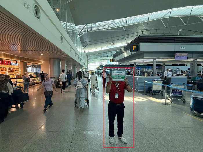 Meet the staff holding the “Round Plus” picket between the E and F counters at the airport.